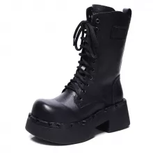 Use our battle tested marketing materials for Genuine Leather Retro Lace-Up Ankle Boots with Square Heel