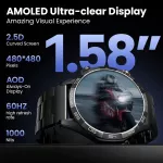 - 1.58-inch AMOLED Display: Enjoy vibrant, sharp visuals with a crystal-clear resolution of 480x480, delivering an ultra-responsive touch experience with a 60Hz refresh rate.