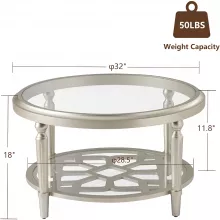 Use our battle tested marketing materials for 32" Round Glass Coffee Table with Storage, 2-Tier Design, Clear Champagne Finish