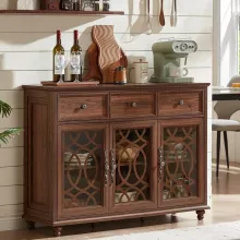Use our battle tested marketing materials for Farmhouse Style Buffet Sideboard Cabinet with Storage, Adjustable Shelves, and Glass Doors