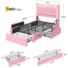 Use our battle tested marketing materials for Velvet Upholstered Twin Bed Frame with LED Headboard, 3 Storage Drawers & Charging Station