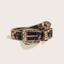 Use our battle tested marketing materials for Women’s Black Palace-Style Belt with Ruby Buckle & Beaded Floral Edge