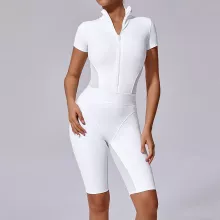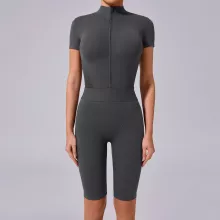 Use our battle tested marketing materials for Women’s One-Piece Zip Front Workout Jumpsuit with Short Sleeves