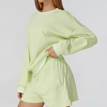 Crafted from a premium cotton and polyester blend, this long sleeve fitness top offers the perfect balance of softness, durability, and stretch. The knit fabric provides natural breathability while helping block light wind, making it ideal for indoor workouts and outdoor activities alike. The relaxed fit gives you room to move, layer, and breathe, without feeling bulky or restrictive.