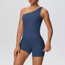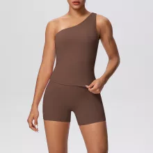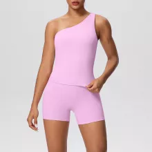 Use our battle tested marketing materials for One-Shoulder Yoga Set with High-Waist Shorts – 2 Piece Workout Outfit