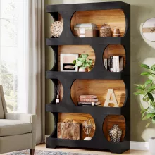Use our battle tested marketing materials for Modern 4-Tier S-Shaped Wood Bookcase - Tall Freestanding Storage Shelf