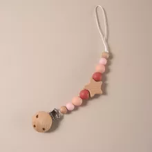 Use our battle tested marketing materials for Baby Pacifier Holder with Wooden Stars & Silicone Bead Teether | Newborn Soother Chain