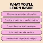 - AI Integration – Use AI to clarify your needs, practice conversations, and reflect on your boundaries regularly for ongoing personal growth.