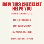 This digital download is perfect for women looking to regain control of their busy lives and prioritize their well-being. Whether you're a working professional, a stay-at-home mom, or managing both, this checklist is tailored for you. If you’ve been struggling with balancing work, family, and self-care, or you simply want a structured guide to help you achieve more peace and productivity, this is the resource you need.What Makes This Checklist Different?