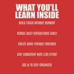 This guide is perfect for adults with ADHD, self-diagnosed or formally diagnosed, who want realistic strategies that fit real life. It’s also ideal for students, freelancers, creatives, and professionals who struggle with focus, procrastination, or staying organized.What Makes It Different