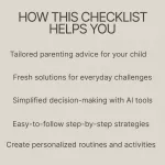 Unlike other parenting guides, the "Smart Parenting with AI" checklist provides a structured, easy-to-follow approach to integrating AI tools into your parenting routine. It focuses not just on general advice, but on using technology to tailor solutions to your child's specific needs and circumstances. It's more than just a list—it's a parenting strategy that evolves with you and your child.