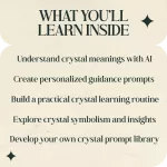 Instead of memorizing long lists of crystal meanings, you’ll learn how to ask the right questions and unlock deeper insights through carefully designed prompts. This interactive learning approach helps you build a personal crystal practice while discovering new perspectives on crystal energies and symbolism.