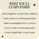 Instead of telling you to buy dozens of crystals, it shows you how to build a beginner crystal collection slowly and intentionally. The guide includes practical examples, a real beginner shopping case study, and easy systems for organizing and learning about your crystals over time.
