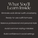 - Teaches you how to style outfits for work dinner in a practical, repeatable way