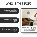 - Chapter 3: Adding Style Without Breaking the Bank – Find affordable ways to enhance your guest room with bedding, curtains, wall art, and textures that pop.