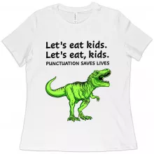 Use our battle tested marketing materials for Women's Punctuation Saves Lives Dinosaur T-Shirt - Unique Women's T-Shirt