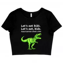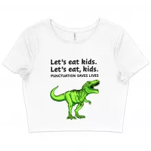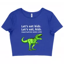 Use our battle tested marketing materials for Women's Cropped Punctuation Saves Lives Dinosaur T-Shirt - Funny T-Rex T-Shirt