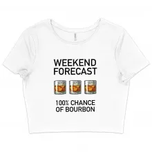 Use our battle tested marketing materials for Women's Cropped Weekend Forecast Bourbon Funny Drinking T-Shirt - Adult Humor T-Shirts