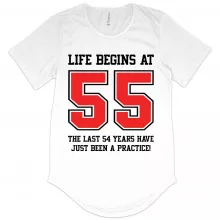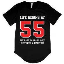 Use our battle tested marketing materials for Men's Life Begins at 55 T-Shirt with Curved Hem - 55th Birthday T-Shirts - 55 Year Old Birthday T-Shirt