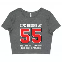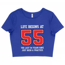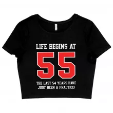 Women's Cropped Life Begins at 55 T-Shirt - 55th Birthday T-Shirts - 55 Year Old Birthday T-Shirt