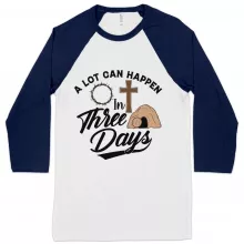 A Lot Can Happen in 3 Days Baseball T-Shirt - Christian T-Shirts - Religious Tee Shirts