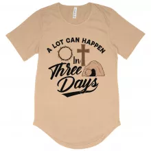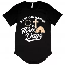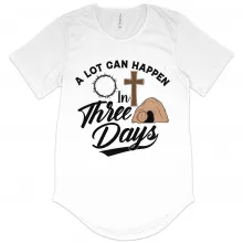 Use our battle tested marketing materials for Men's A Lot Can Happen in 3 Days T-Shirt with Curved Hem - Christian T-Shirts - Religious Tee Shirts