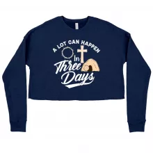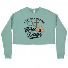 Use our battle tested marketing materials for Women's Cropped Fleece A Lot Can Happen in 3 Days Sweatshirt - Christian Sweatshirts - Religious Sweatshirts