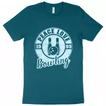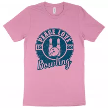 Use our battle tested marketing materials for Heather Peace Love Bowling T-Shirt - Bowling T-Shirt Design - Bowling Themed T-Shirts