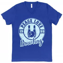 Use our battle tested marketing materials for V-Neck Peace Love Bowling T-Shirt - Bowling T-Shirt Design - Bowling Themed T-Shirts