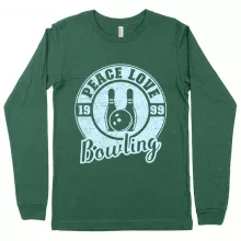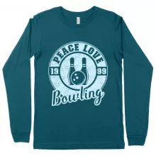 Peace Love Bowling Long Sleeve T-Shirt - Bowling T-Shirt Design - Bowling Themed T-Shirts