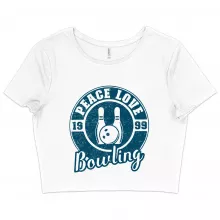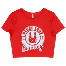 Use our battle tested marketing materials for Women's Cropped Peace Love Bowling T-Shirt - Bowling T-Shirt Design - Bowling Themed T-Shirts