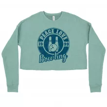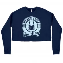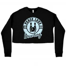 Use our battle tested marketing materials for Women's Cropped Fleece Peace Love Bowling Sweatshirt - Bowling Sweatshirt Design - Bowling Themed Sweatshirts