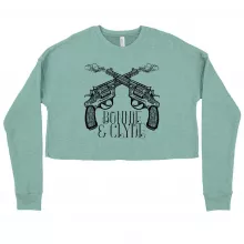 Use our battle tested marketing materials for Women's Cropped Fleece Bonnie and Clyde Sweatshirt - Gun Sweatshirt - Bonnie and Clyde Clothing