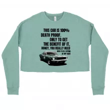 Use our battle tested marketing materials for Women's Cropped Fleece This Car Is 100% Death Proof Sweatshirt - Death Proof Movie Sweatshirt