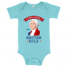 Use our battle tested marketing materials for Baby Too Cool for British Rule Onesie - George Washington Onesie - Funny Independence Day Onesies