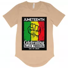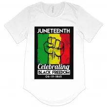 Use our battle tested marketing materials for Men's Black American Celebrate Freedom T-Shirt with Curved Hem - Vintage Juneteenth T-Shirt