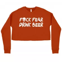 Use our battle tested marketing materials for Women's Cropped Fleece Fuck Fear Drink Beer Sweatshirt - No Fear Sweatshirts