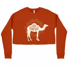 Use our battle tested marketing materials for Women's Cropped Fleece It's Hump Day Sweatshirt - Camel Sweatshirt
