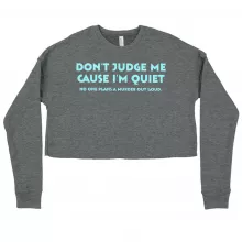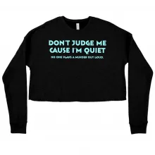Use our battle tested marketing materials for Women's Cropped Fleece Don’t Judge Me Cause I’m Quiet Sweatshirt - Funny Sweatshirt Sayings for Women