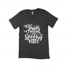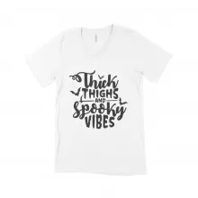 Use our battle tested marketing materials for Thick Thighs & Spooky Vibes Women's Jersey V-Neck T-Shirt