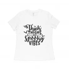Use our battle tested marketing materials for Thick Thighs & Spooky Vibes Women's Relaxed Jersey T-Shirt