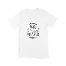 Use our battle tested marketing materials for Thankful Grateful Blessed Unisex Jersey V-Neck T-Shirt
