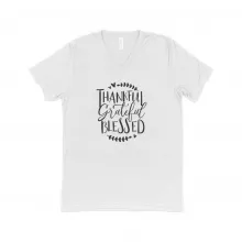Use our battle tested marketing materials for Thankful Grateful Blessed Unisex Triblend V-Neck T-Shirt
