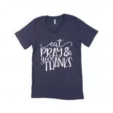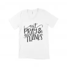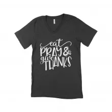 Use our battle tested marketing materials for Eat Pray Give Thanks Unisex Jersey V-Neck T-Shirt