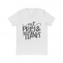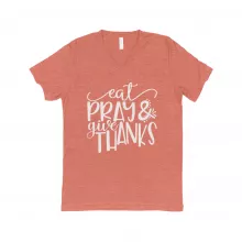 Use our battle tested marketing materials for Eat Pray Give Thanks Unisex Triblend V-Neck T-Shirt