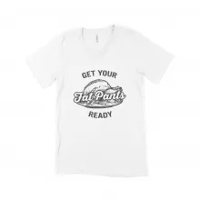 Use our battle tested marketing materials for Get Your Fat Pants Ready Unisex Jersey V-Neck T-Shirt