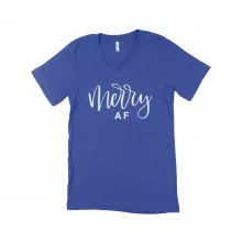 Use our battle tested marketing materials for Merry AF Unisex Jersey V-Neck T-Shirt