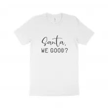 Use our battle tested marketing materials for Santa, We Good? Unisex Jersey T-Shirt Made in USA