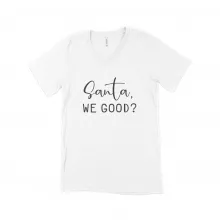 Use our battle tested marketing materials for Santa, We Good? Unisex Jersey V-Neck T-Shirt