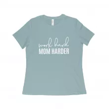 Use our battle tested marketing materials for Work Hard Mom Harder Women's Relaxed Heather T-Shirt